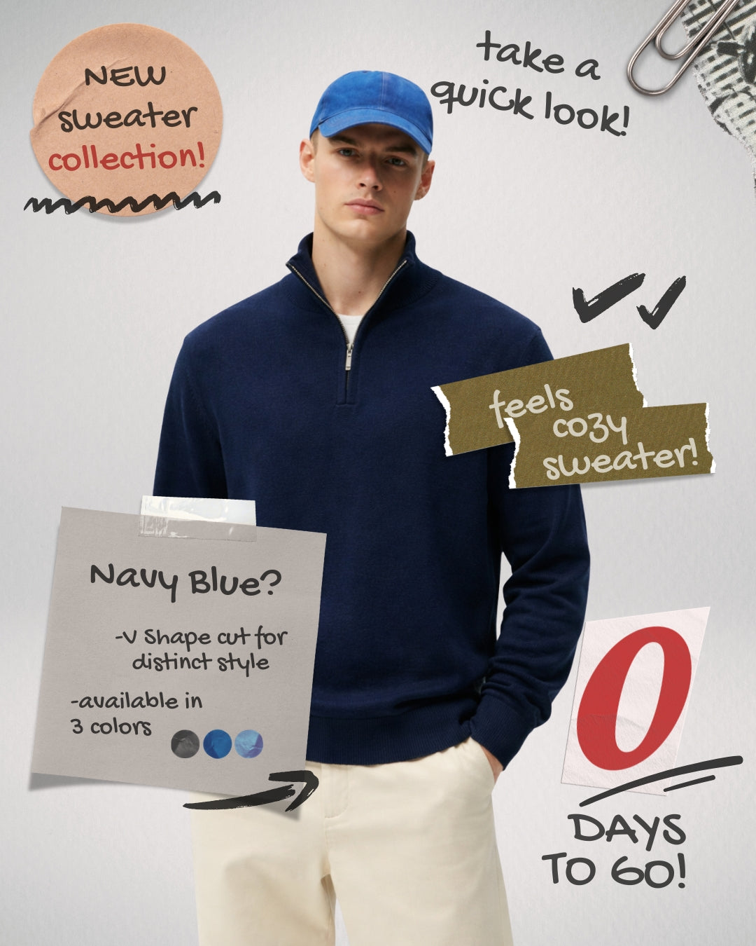 Men’s Navy Blue Half-Zip Sweater – Smart Casual Winter Wear