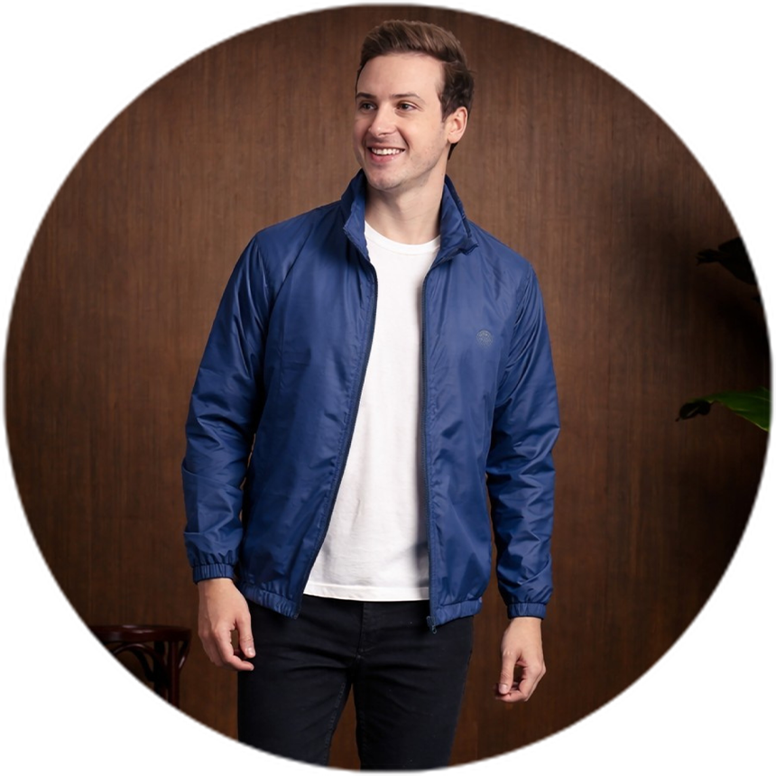 Men's Blue Windbreaker Jacket – Full Zip, Casual Outdoor Wear