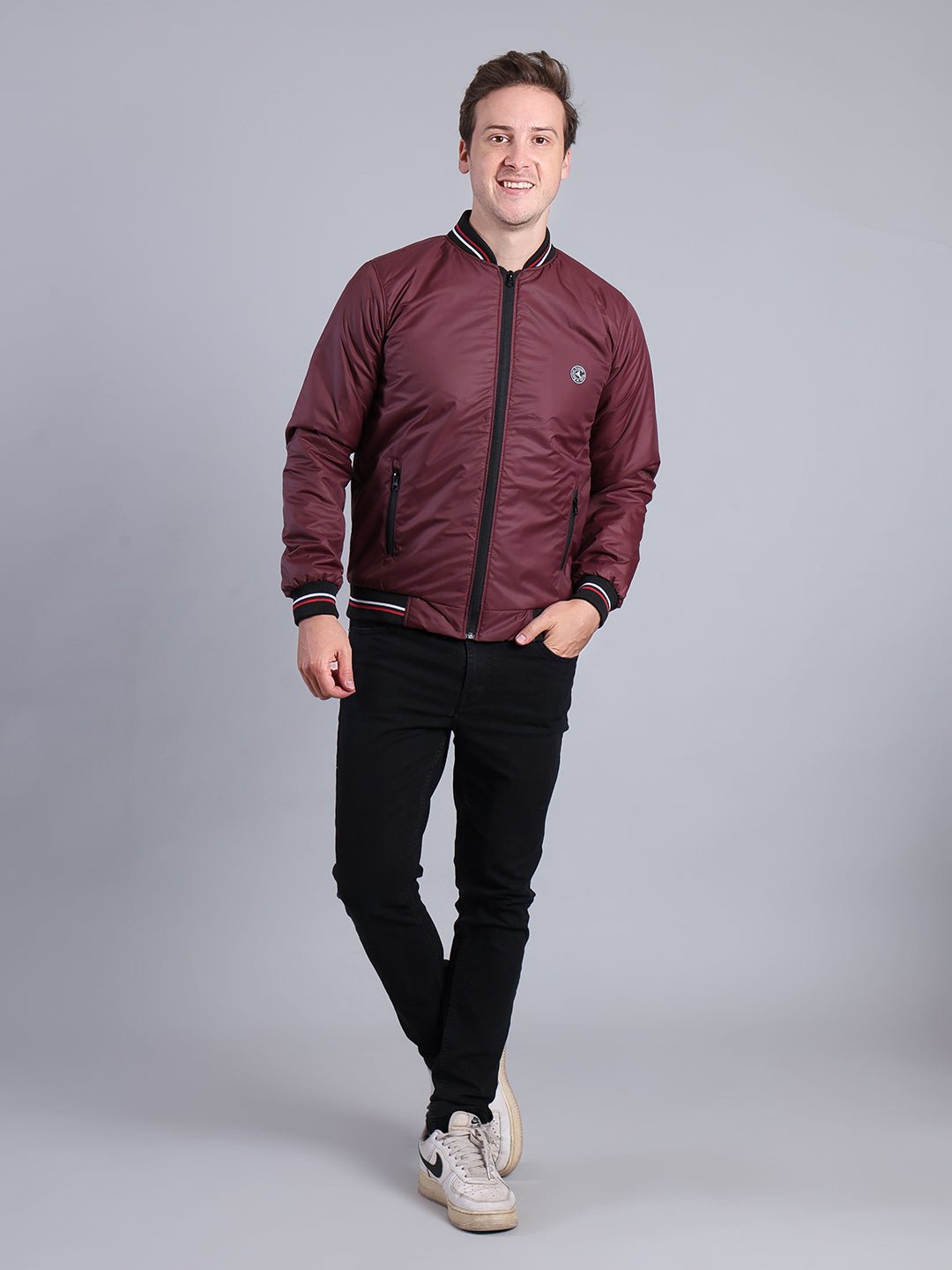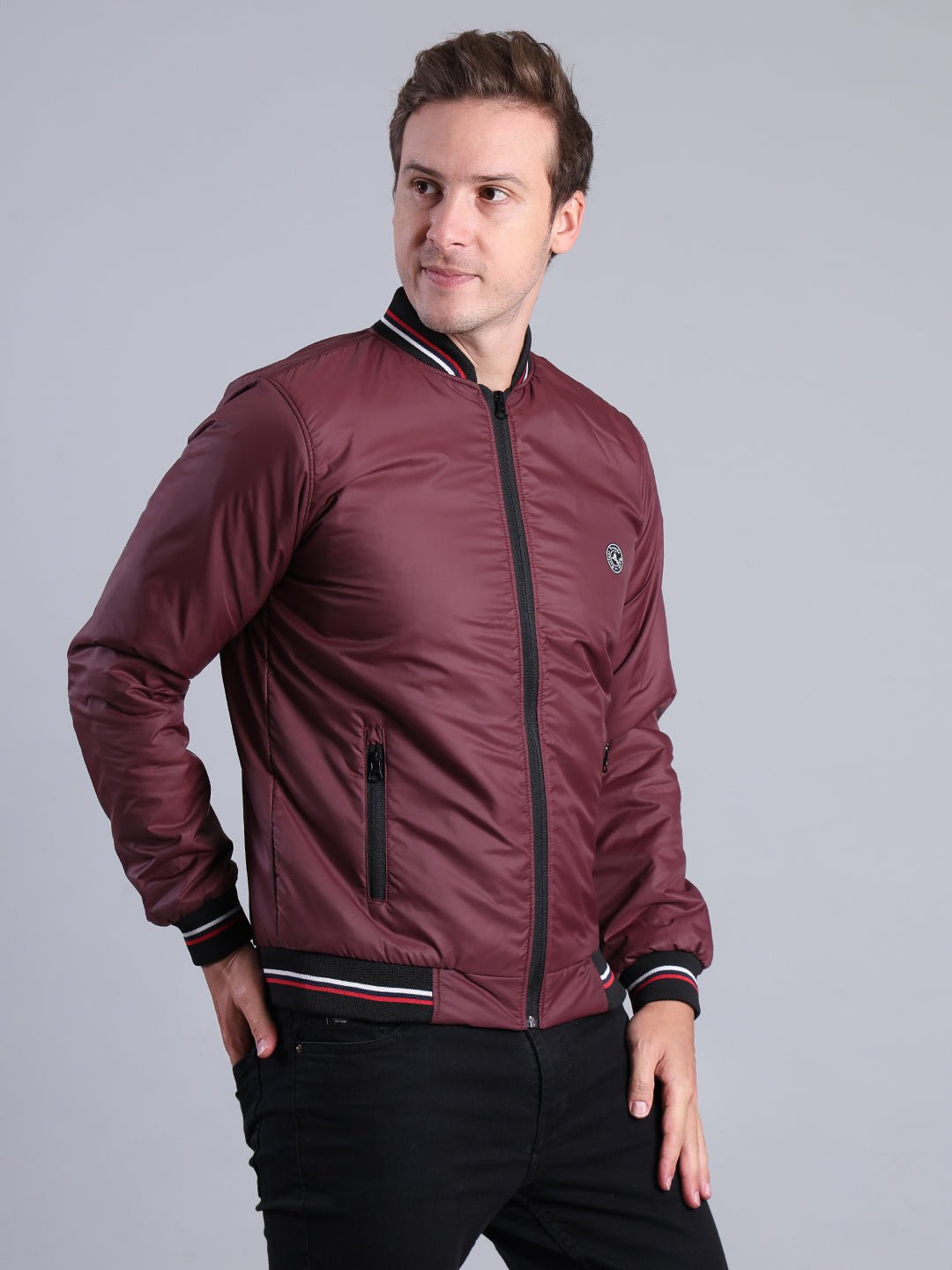 Men's Burgundy Bomber Jacket – Stylish Full Zip with Ribbed Collar & Cuffs