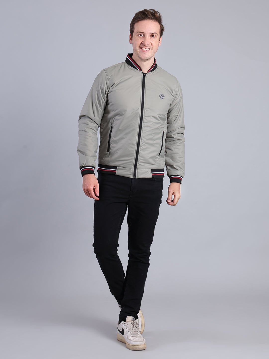 Men's Grey Bomber Jacket – Full Zip with Stylish Ribbed Details