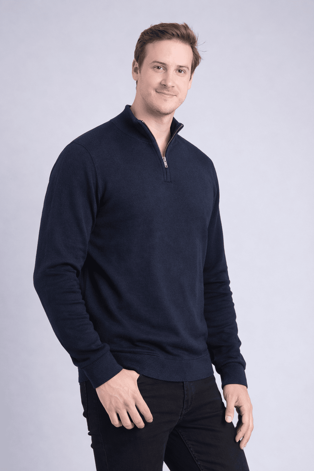 Men’s Navy Blue Half-Zip Sweater – Smart Casual Winter Wear