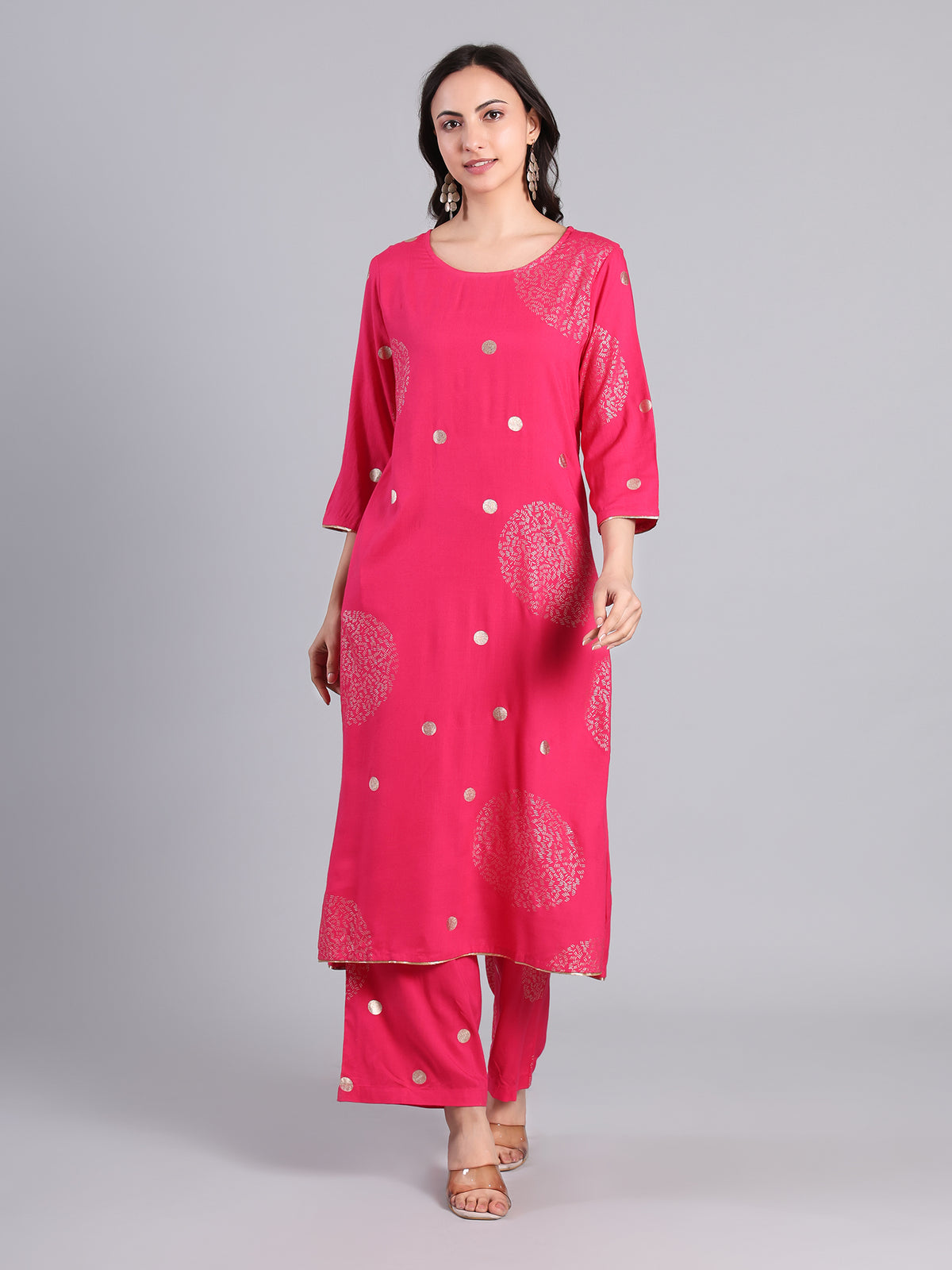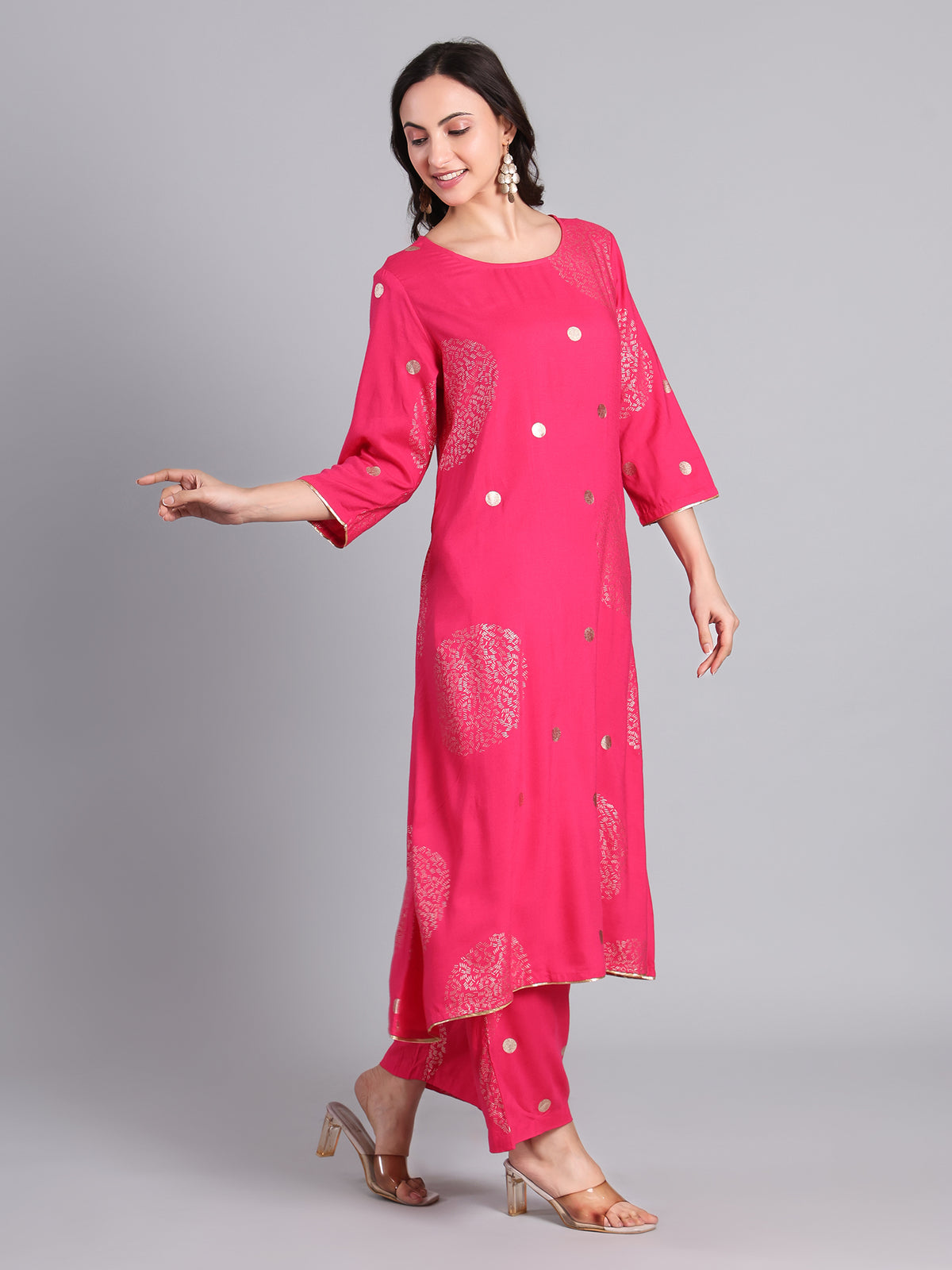 Elegant Pink Floral Printed Kurti with Pants for Women