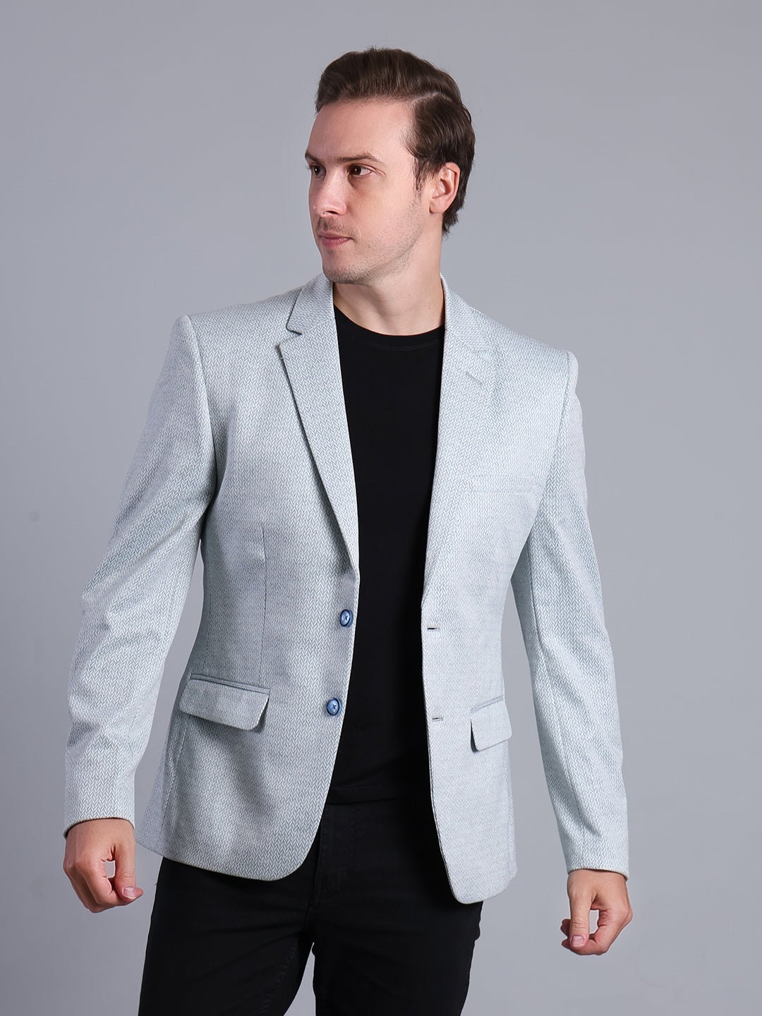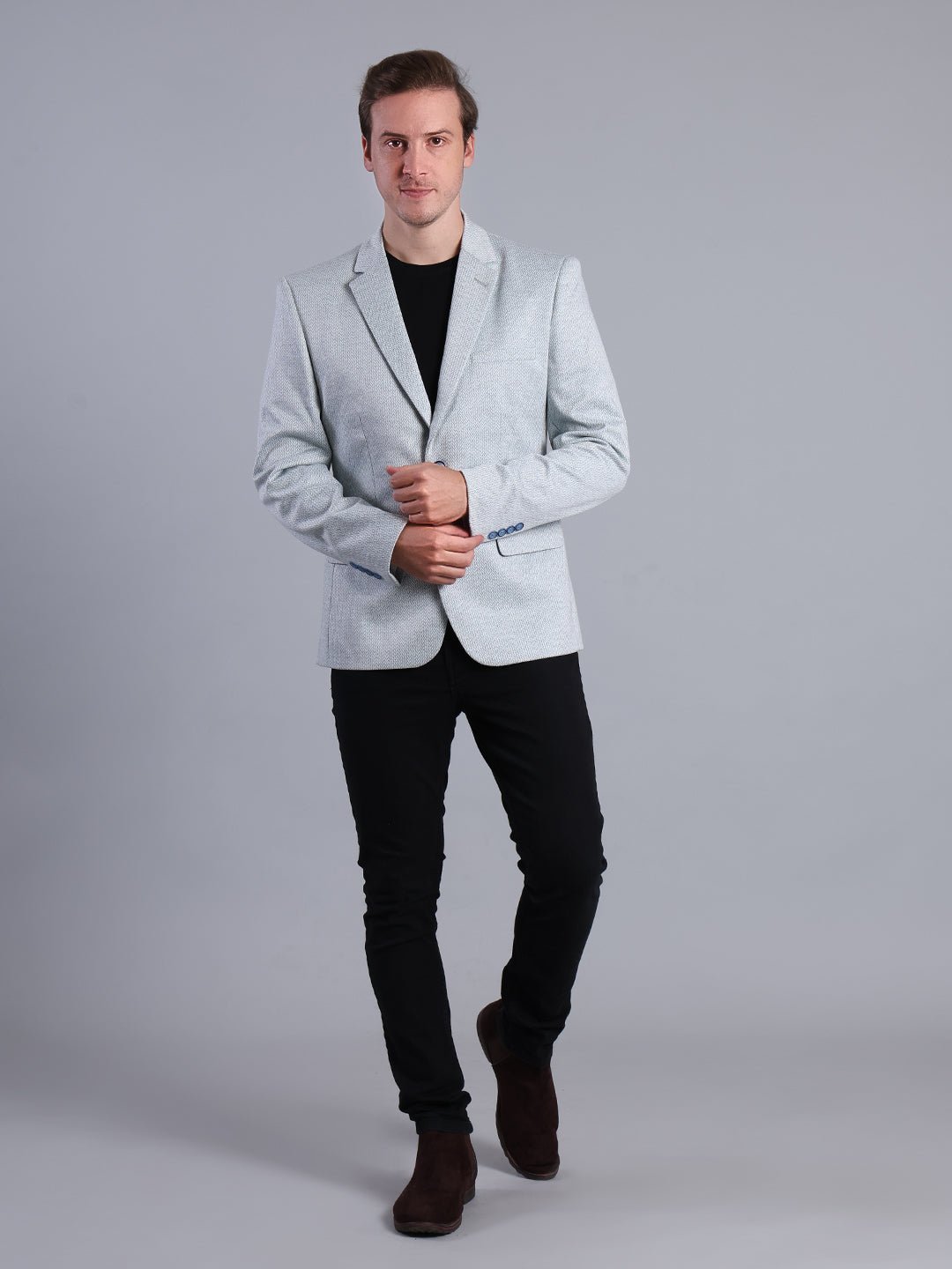 Elegant Light Grey Textured Blazer for Men