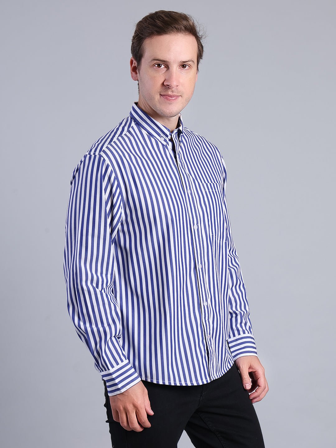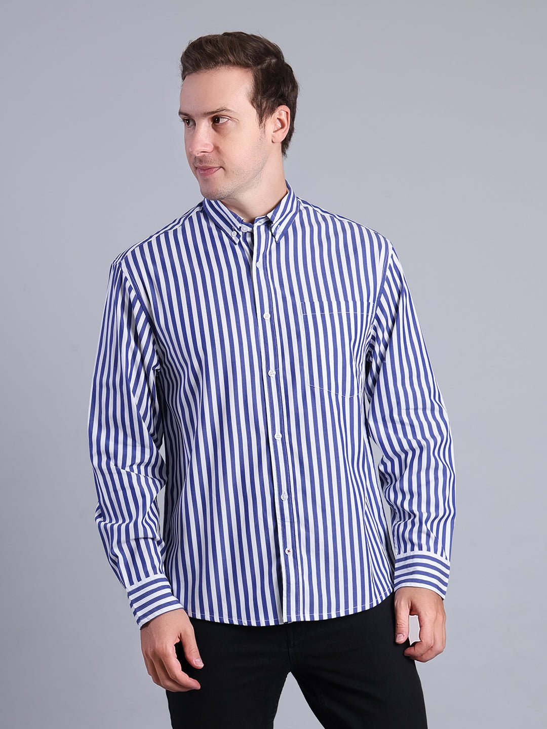 Men's Blue Striped Checkered Shirt - Casual Cotton Button-Up